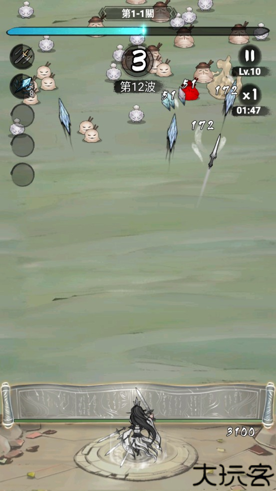 敌方魔物逐渐出现,角色全程自动攻击,持续时间越久难度越高。