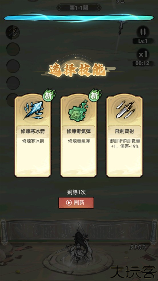 击败敌怪累积经验,每次升级从三项技能中挑选一项提升能力。