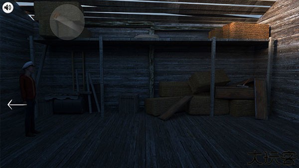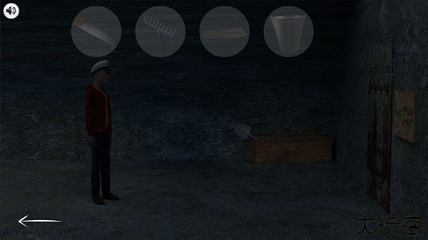 5、通关点击木屋的门,进入后获取钉耙、再用梯子爬上去获取绳索。