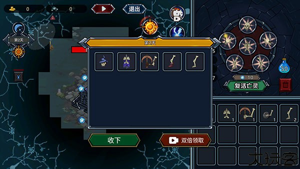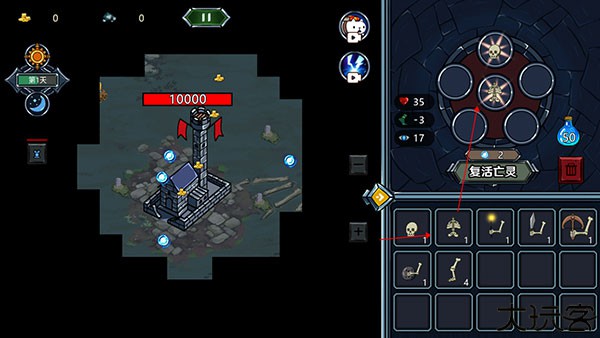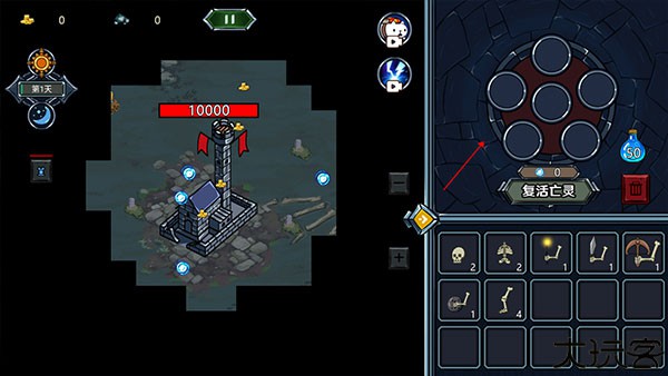 4、随后点击“复活亡灵”,复活后的亡灵就会从左侧塔楼释放出来,自由去探索这片大陆并为你搜集资源,努力复活更多亡灵,组建集结自己的军队。