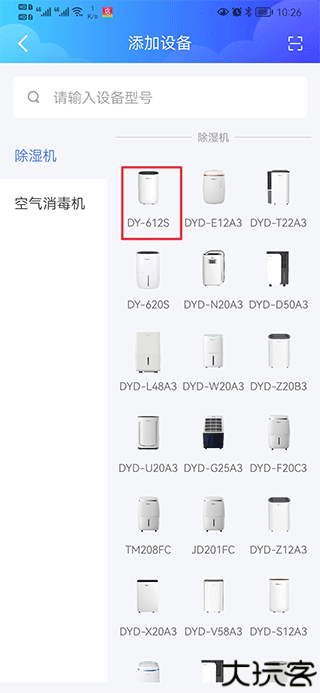 2、选择自己要添加的电子设备型号,如DY-612S。