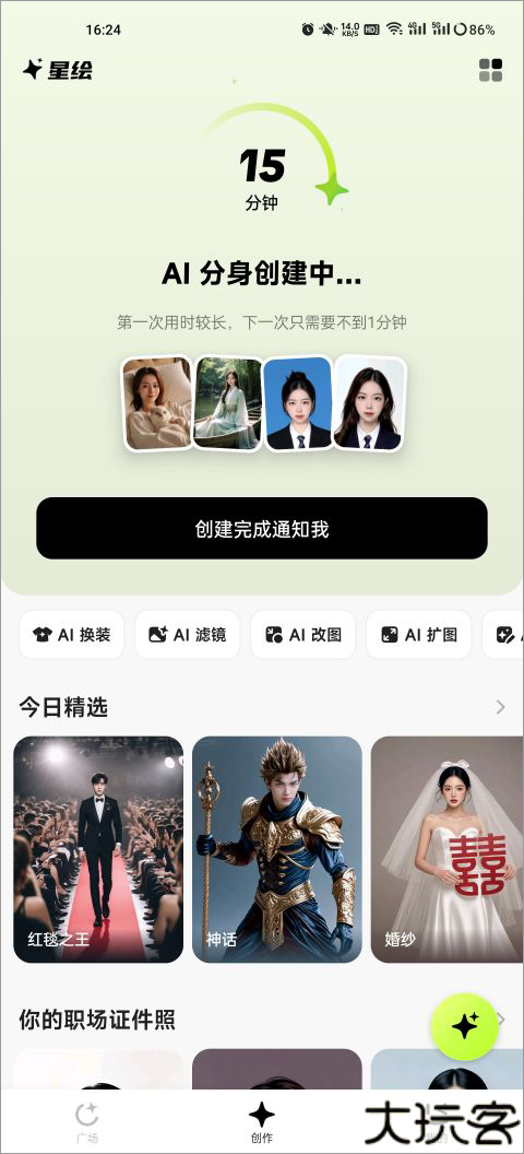星绘软件提供着AI相机的功能,能够快速制作出用户想要的效果。只需要通过拍照或导入照片就能够进行ai创作,挑选适合你想要呈现的效果生成各种不同风格的照片。高度自定义化,而且素材库里拥有海量素材资源能够一个个的浏览。星绘软件下载安装后可以轻松制作出写真,在利用智能ai的技术,快速的获得不同的ai图片体验非常的方便。