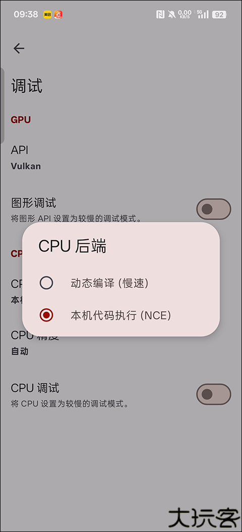 启用NCE以优化模拟体验,需调试模式下开启选项。