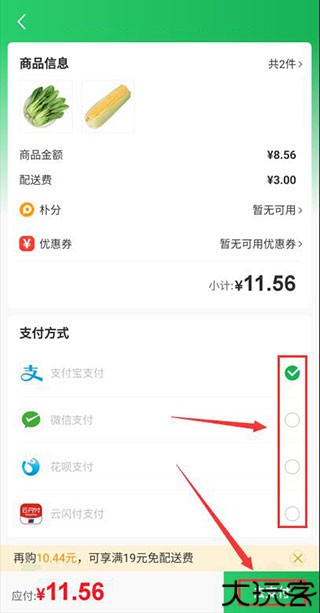 5、接着选定支付方式,最后点击去支付,输入支付密码即可成功购买东西。