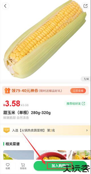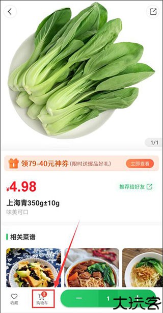2、然后点进商品的详情页中,点击右下角绿色的加入购物车按钮后即可成功添加进购物车。