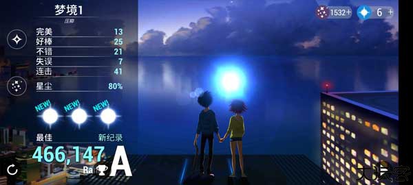 关卡结束会显示得分、连击与失误情况,可选择刷新重试。