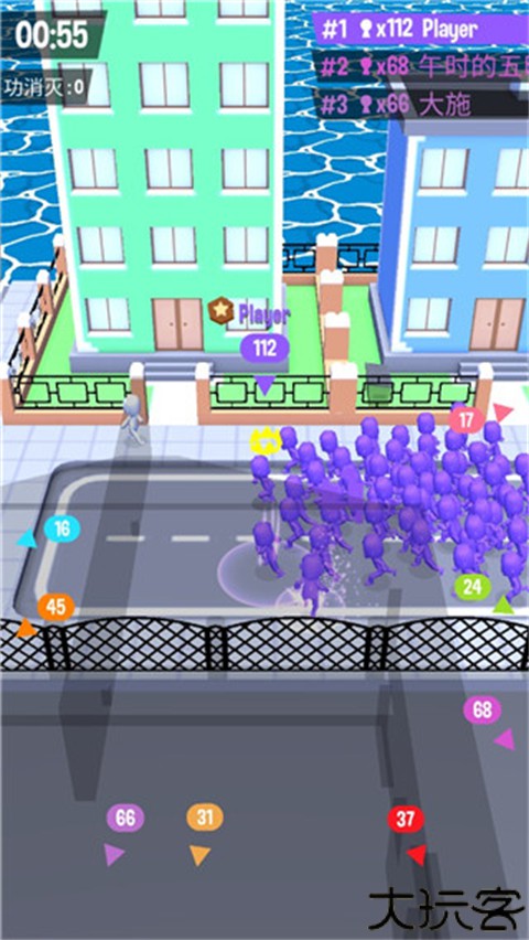 拥挤城市大逃亡闯关是支持单人游玩的趣味竞技类小游戏,核心玩法非常直观,孤身一人出发,触碰白色路人不断扩大自己的队伍规模。在拥挤城市大逃亡闯关下载安装中,要是遇到其他颜色的队伍时,只要你的人数比对方多,就可以将他们纳入麾下,反之则会被对方吞并。玩家需要时刻留意周围局势,巧妙绕行、伏击或正面对抗。