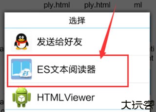 4、弹出选择框选择框中定级“ES文本阅读器”。