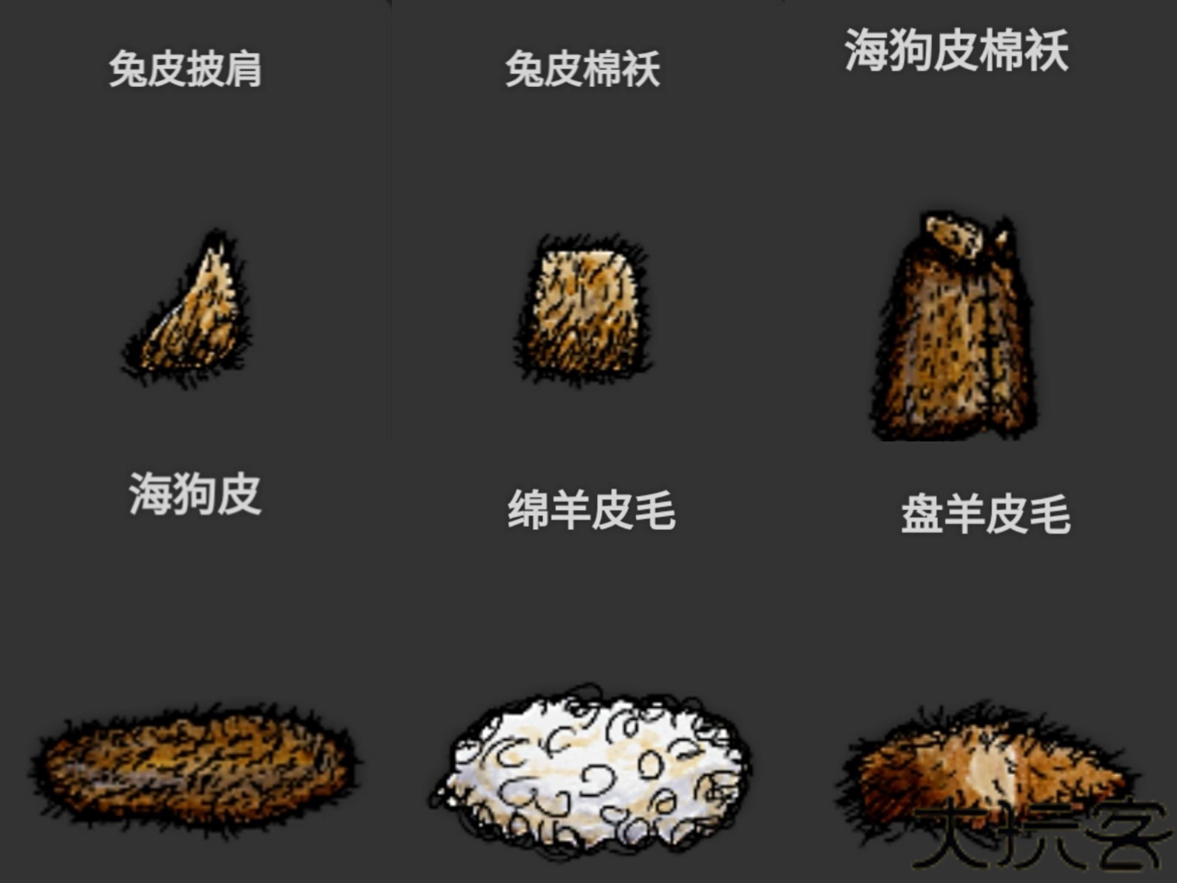 ①海狗皮、绵羊皮毛、盘羊皮毛可以直接穿