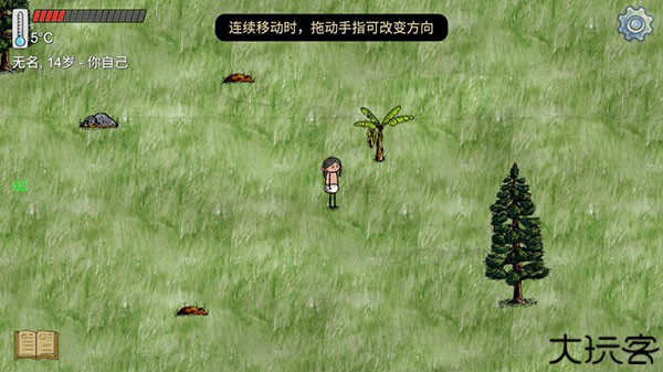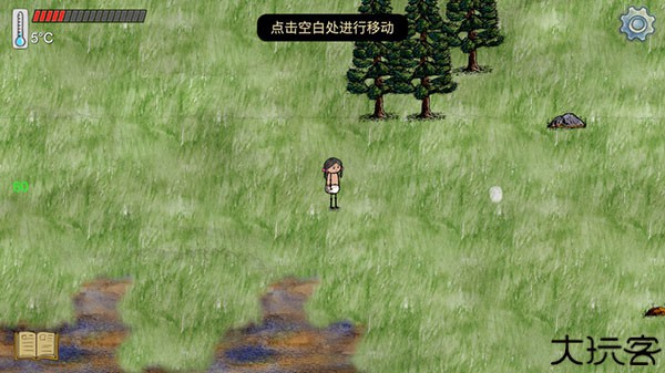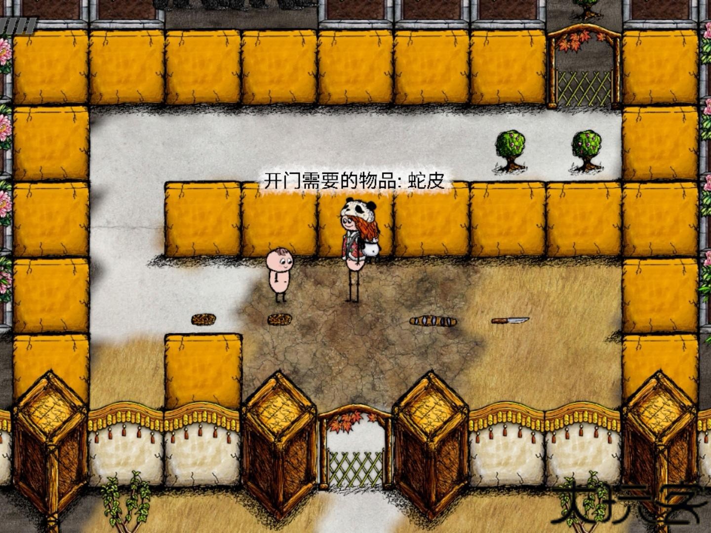 4、穿过熊山熊海,拿路费进了黄色的奇怪建筑,捡起地上的刀干掉沙漠地形上的蛇,剥下蛇皮就可以出门啦,当然刀要揣走后面关卡可以用。