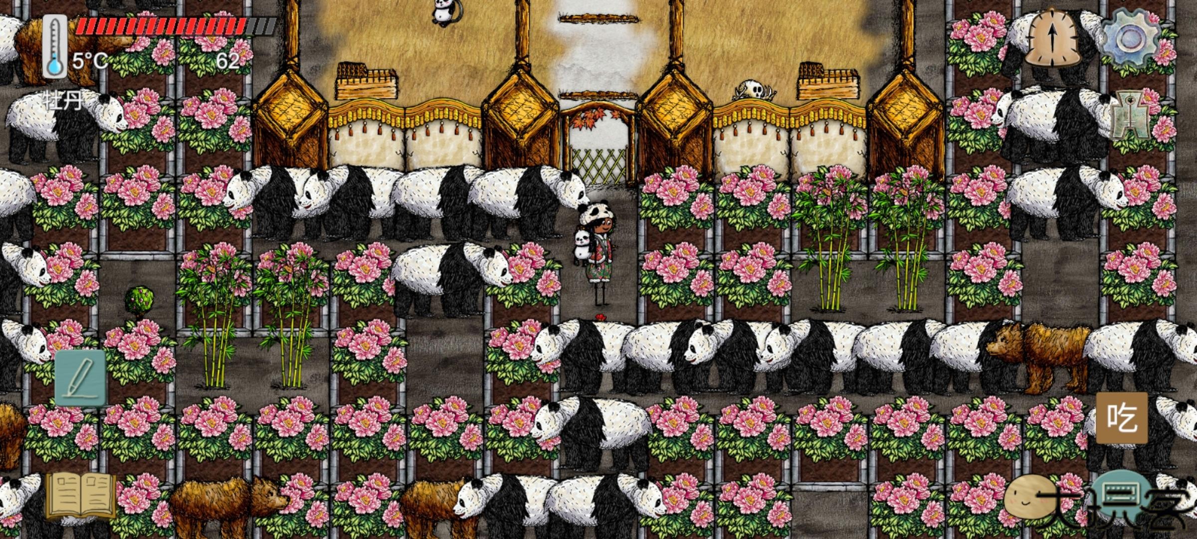 2、牡丹花围成的迷宫里塞满了熊猫和熊,趁着熊不在的时候火速在熊猫的掩护下冲过去。大体方向是向右然后下然后左,路上小心被熊咬,可疼。