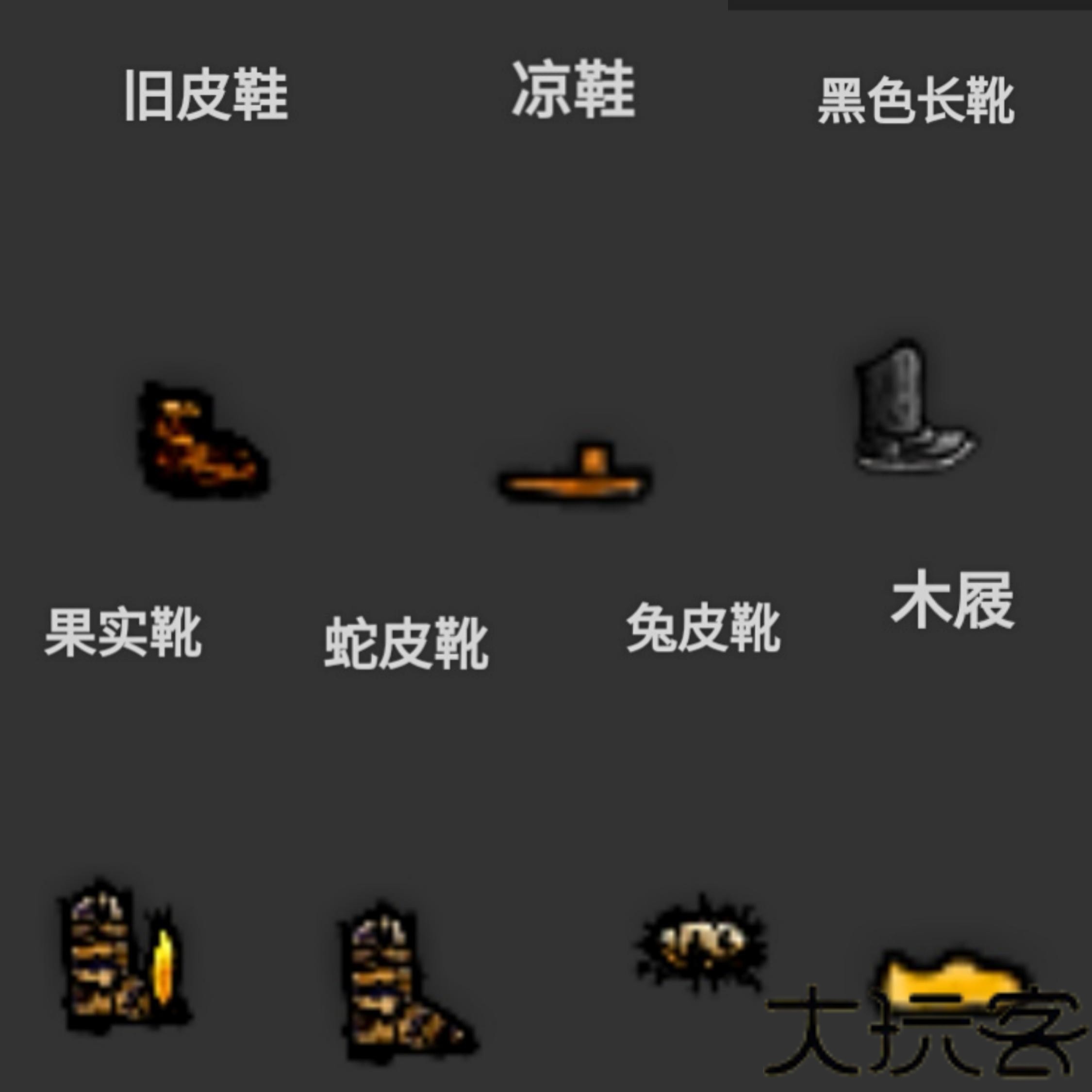 ④果实靴=蛇皮靴+仙人掌果实【损】(脱鞋的时候果子会被磕下来,必要时可以当储备粮ヾ(*Ő౪Ő*))