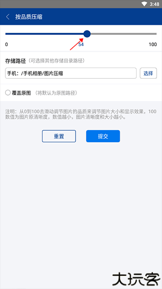 5、通过滑动条调整图像质量等级,设定后确认压缩任务启动。