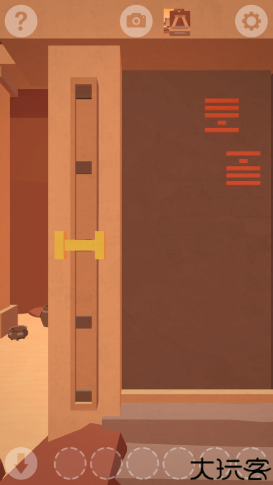 2、需要根据位置上的提示来调整左右两边的柱子,玩家打开门后进入。