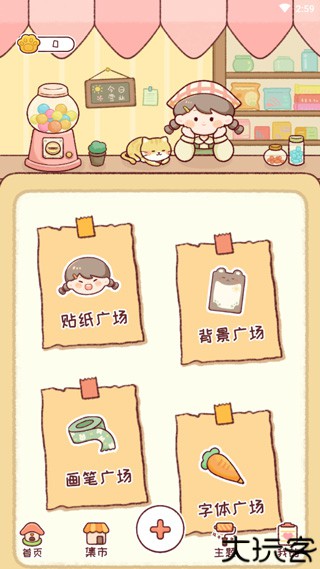 2、前往集市选择贴图、字型、涂鸦工具与画面底纹。
