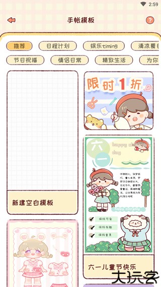 3、点击加号开启模版库,自选设计风格制作手帐。