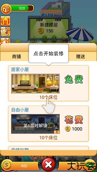 2、而住宅是员工居住的地方,有别墅、公寓、复式、学生宿舍等等精美住宅随玩家挑选,每间可容纳10位员工,让玩家有更多的员工来上班。