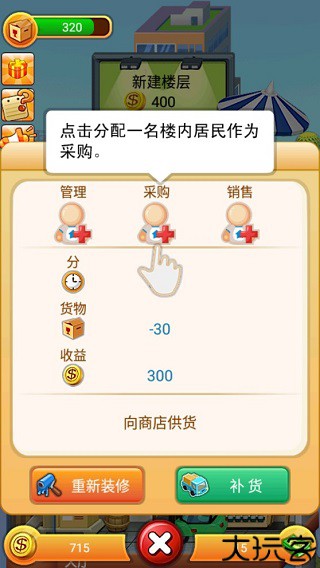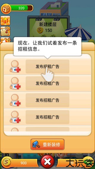 1、万丈高楼平地起,现在让玩家正式开始建设一个新楼层。