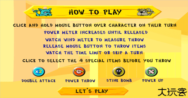 挑选角色后长按蓄力,精准投掷骨头击中对手。