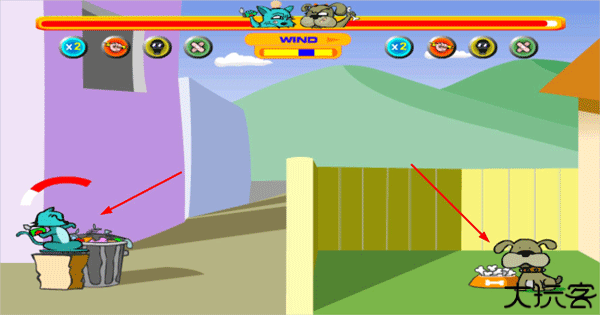 猫狗大战单机版(Cat Vs Dog War)以轻松搞怪的对战玩法为核心,玩家将操控猫或狗互相投掷物品,用智慧与技巧击败对手。对战中蓄力条决定投掷距离,同时需结合风向和风力做出判断,增加策略性。猫狗大战游戏单机版下载后,游戏还提供补血、扔臭弹、提升攻击力、增加攻击次数等特殊技能,每项技能仅能使用一次,考验玩家的时机把握与战术安排。