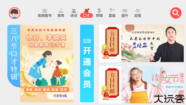 4、可以让孩子在这里训练口才,软件提供了很多节目可以学习。