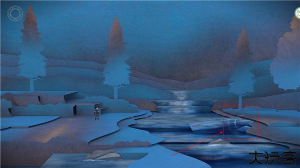 3、在图中有闪光的地方我们都可以点击将其反过来,这个场景将闪光的地方翻起来便可以成为桥,然后进入走过去进入下一个场景。