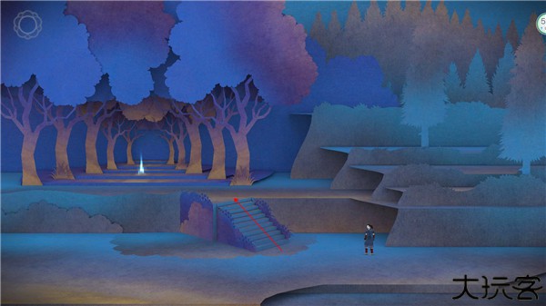 2、双击屏幕后向右边走,可以发现下方有河流过不去的。然后沿着屏幕的最下方进行滑动便可以拉出风铃,然后狼会趴下。(后面有狼的地方我们先要找到和一样的风铃)随后便会出现一座桥,从桥上走过去,来到下一个场景。