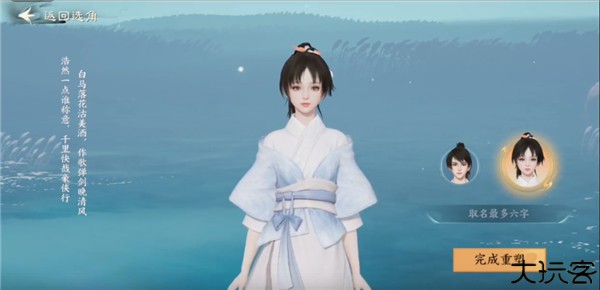 点击“踏入江湖”,挑选门派与外观,起名后确认生成角色。