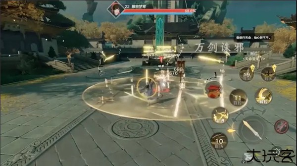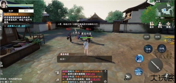 跟随任务可触发战斗,玩家可通过技能对战敌人。