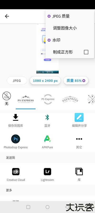 4、编辑完图片的内置内容后,点击右上角的设置改变图片的格式、大小、质量。