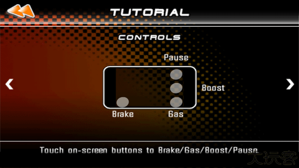 2、屏幕左侧为刹车,右侧为油门,中间可暂停和激活推进。