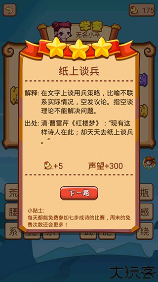 3、丰富成语典故:边玩边学,探索成语背后的故事。