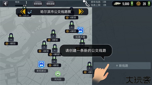 3、弄完了自己的公交后,回到主页进入运营模式,在这里创建一条新线路。