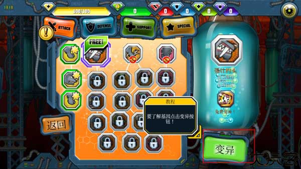5、当玩家获得新的野兽基因之后,玩家可以到实验室里点击基因按钮进行改造,基因按钮能够对野兽进行变异。