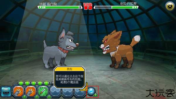 3、当下方没有玩家想要发出的技能时,可以点击技能框右边蓝色按钮来刷新目前所有的技能,但会耗费3个魔法值。