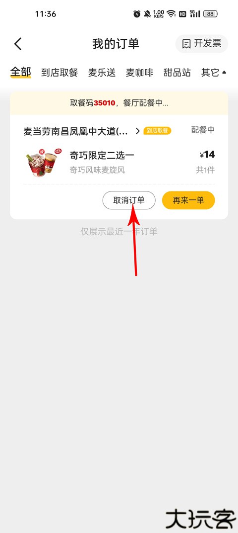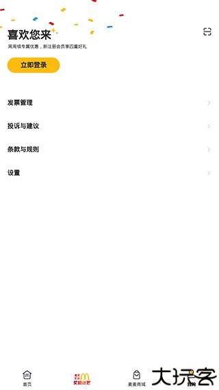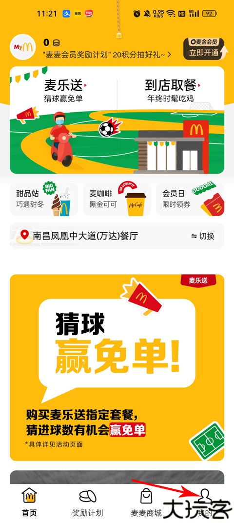 1、进入软件【首页】之后,就能看到最常用的两个功能,分别是麦乐送和到店取餐。