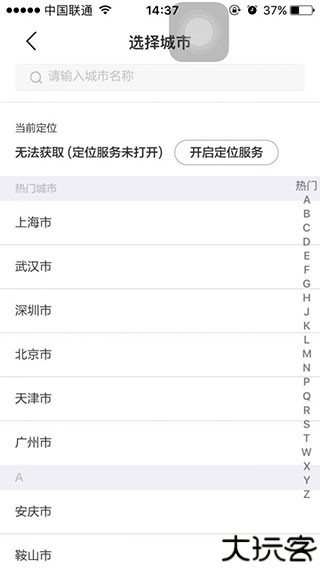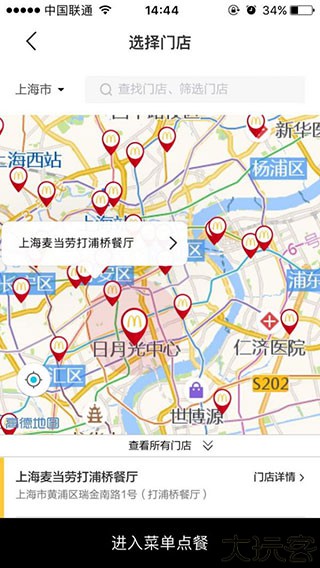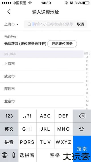1、进入麦当劳app之后,首先需要完成定位。没有允许访问位置权限的用户则可以点击左上角的地址来进入城市选择页面中,在此页面中可以根据城市的首字母上下滑动来选择需要点餐的城市,也可以通过在上方的搜索栏中输入需要查找的城市来进行搜索,搜索完成后点击该城市即可。