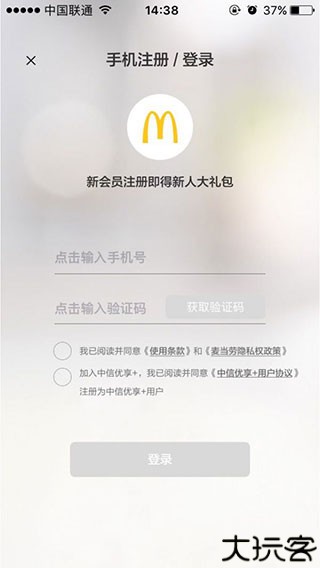 3、进入注册界面中,可以在上方输入手机号然后输入手机中接收的验证码即可完成注册登陆,而注意的是必须先在下方的使用条款和隐私政策前打勾才能点击注册登陆,而往下滑动屏幕则可以在下方选择微信来进行快速登陆,点击后跳转到微信的第三方软件中授权即可,现在新人注册还有新人大礼包各类优惠券哦。