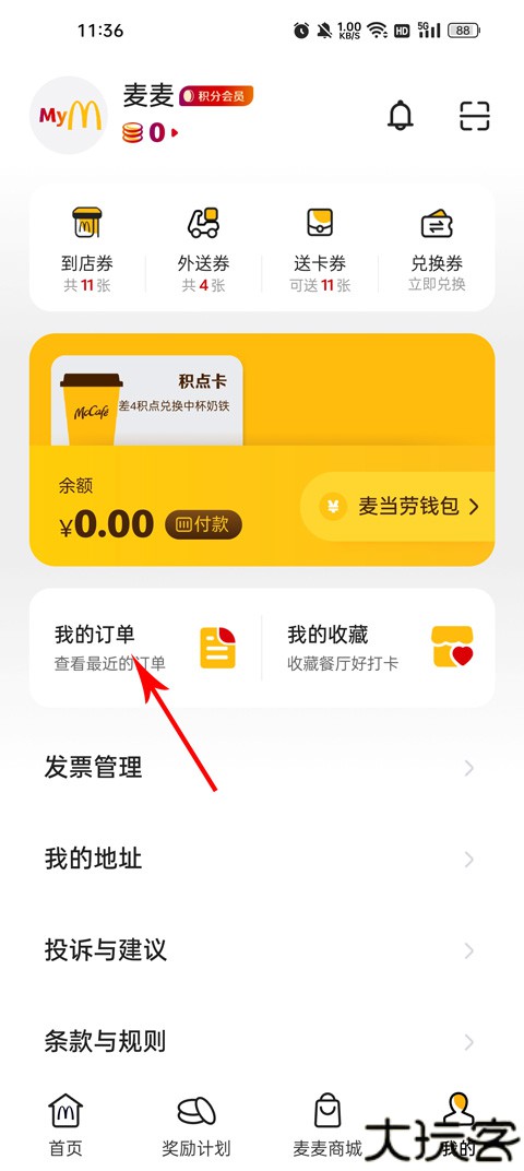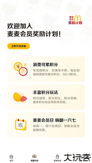 2、切换到【奖励计划】页面之后,还能加入麦麦会员奖励计划,消费可累积分兑换超值好礼。