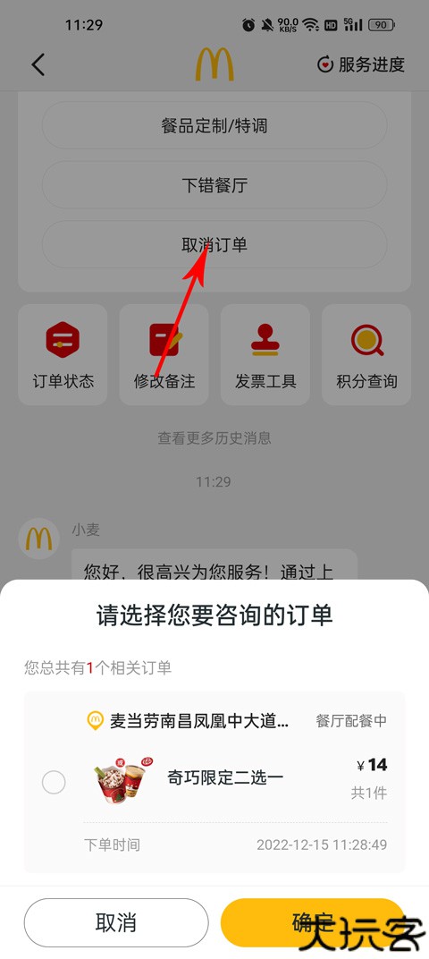 5、然后进入客服服务界面点击取消订单,可以得到商家电话,进行电话取消订单,最后就能退款成功。