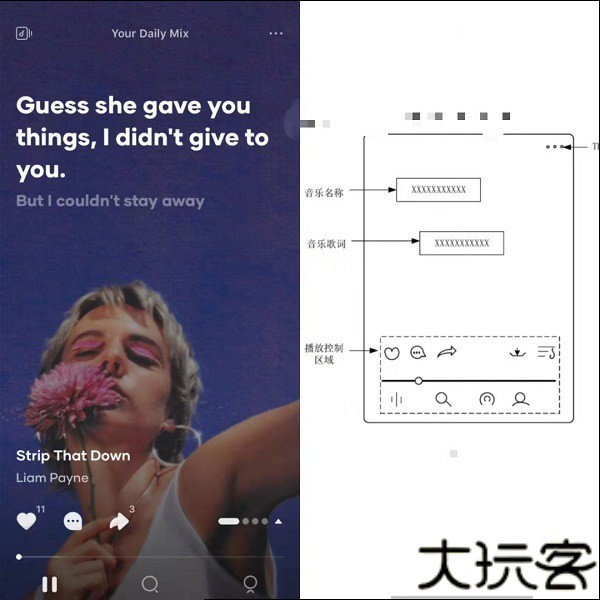 2、手势滑动切换曲目,操作方式与短视频平台类似。