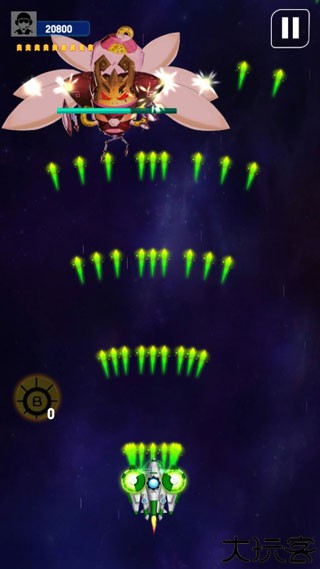 3、飞船自动射击,方向键或点击屏幕灵活移动闪避。