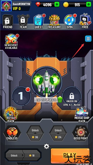 2、飞船界面中强化核心模块,购买配件奖励助力战斗。