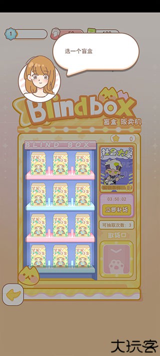 2、共有三种盲盒可以来轻松的装修小屋中的柜子和架子。