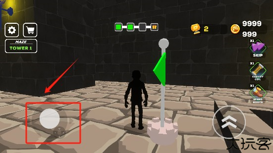 3、完成后,可以看到场景中有着通过摇杆控制角色移动。