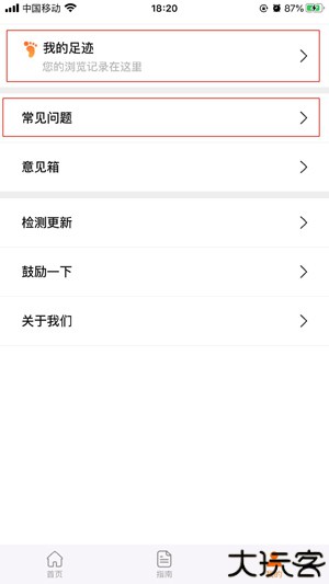 4、“我的”内可看收藏与足迹,“常见问题”帮助快速解惑。