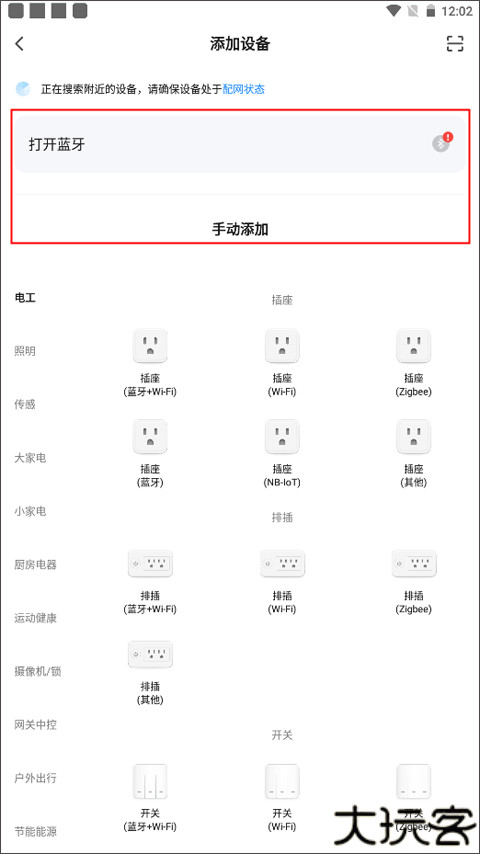 打开首页,点选“添加设备”按钮开始设备接入流程。
