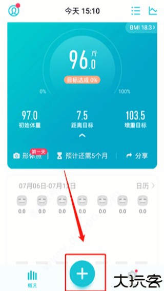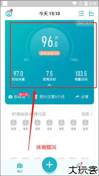 主页显示当前体重、BMI及初始体重,方便实时查看。