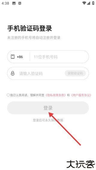 在登录界面输入手机号和验证码,核对无误后点击登录。