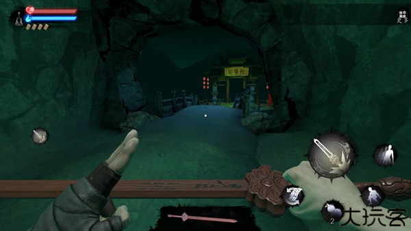 3、使用左轮盘控制方向,右区负责攻击与道具。